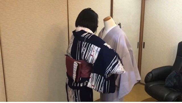 ボディで帯結びを練習していると、