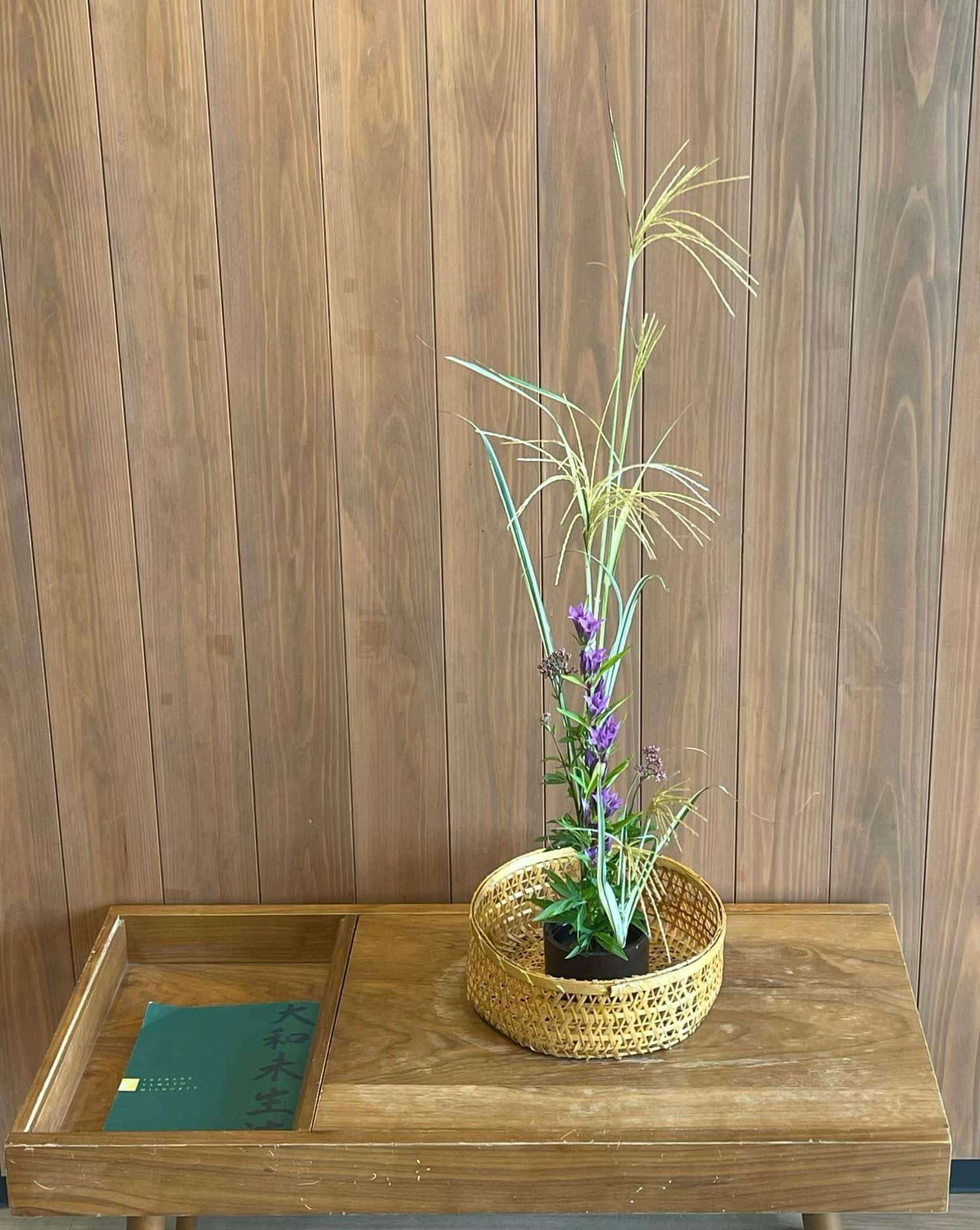 華道講座:10月 2022/10/21 毎月第一月曜は、道の駅 レスティ唐古・鍵遺跡 でレッスンを行っていますが、 その他、茶道と続いて習って下さる生徒様も含め 今月はとても花材に恵まれました 風景の生け花:ツツジ・フトイ・菊 芒・リンドウ・藤袴 雪柳・リンドウ 今の季節は花の持ちが良い 華道
