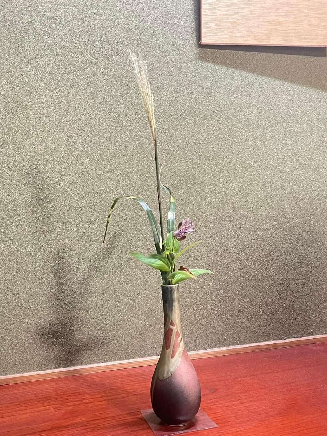 枯葉が混じったホトトギスに芒