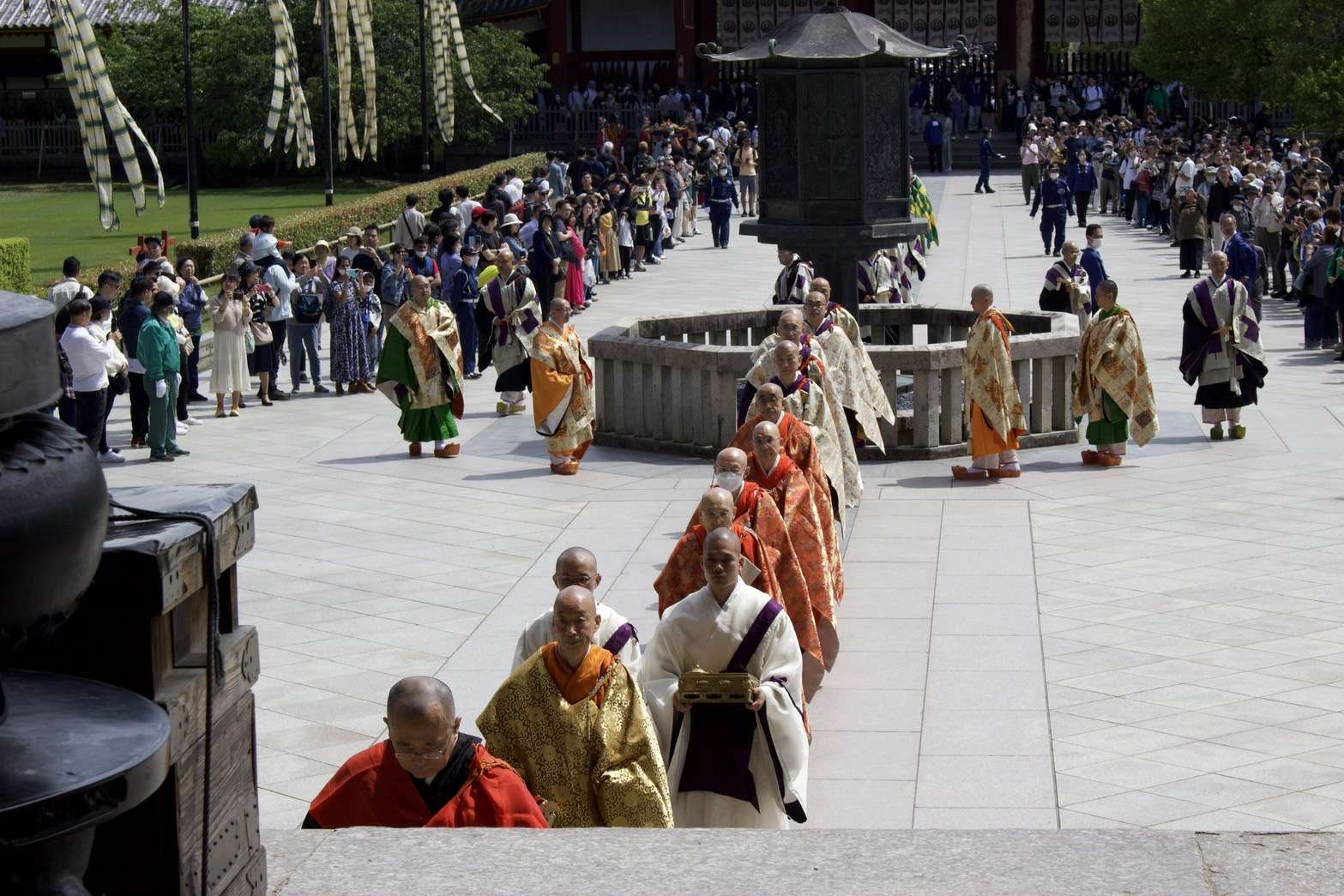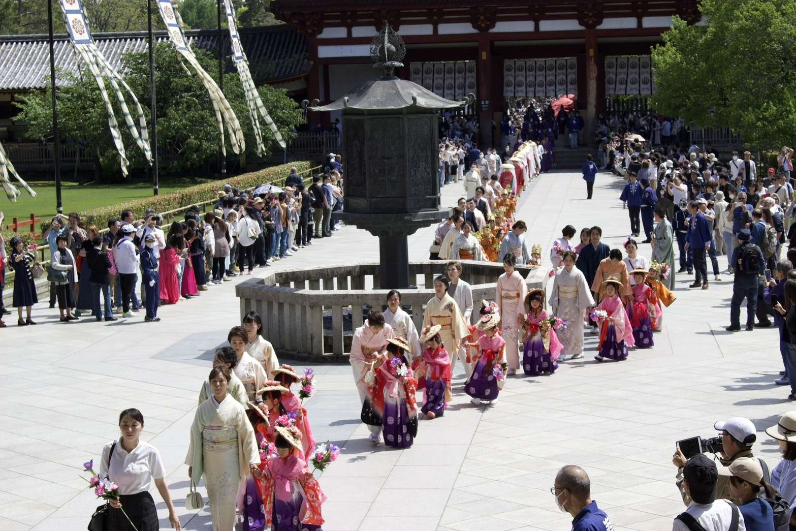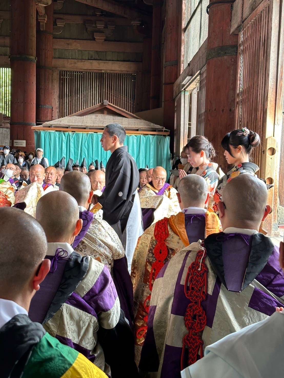 東大寺 聖武祭 献花 2024/05/02 【東大寺 聖武祭 献花】 毎年参加させて頂いております。 大和未生流の献花 奈良東大寺大仏殿を建立し、大仏 開眼の偉業を達成された聖武天皇を偲び、毎年その命日に法要が行われております。 今年も、天皇殿・大仏殿に、大和未生流家元が献花をご奉納されました。 日頃公開されていない天皇殿での法要が終わると、式衆・稚児などによる華やかな練り行列が行われます。 行列が大仏殿に到着した後は、聖武天皇慶讃法要が執り行われました。 風薫る素晴らしい季節に 素敵なご縁を頂きました事 感謝です🙏 華道