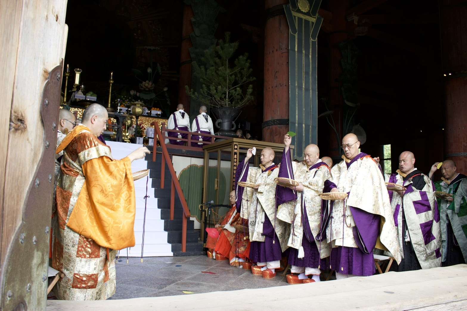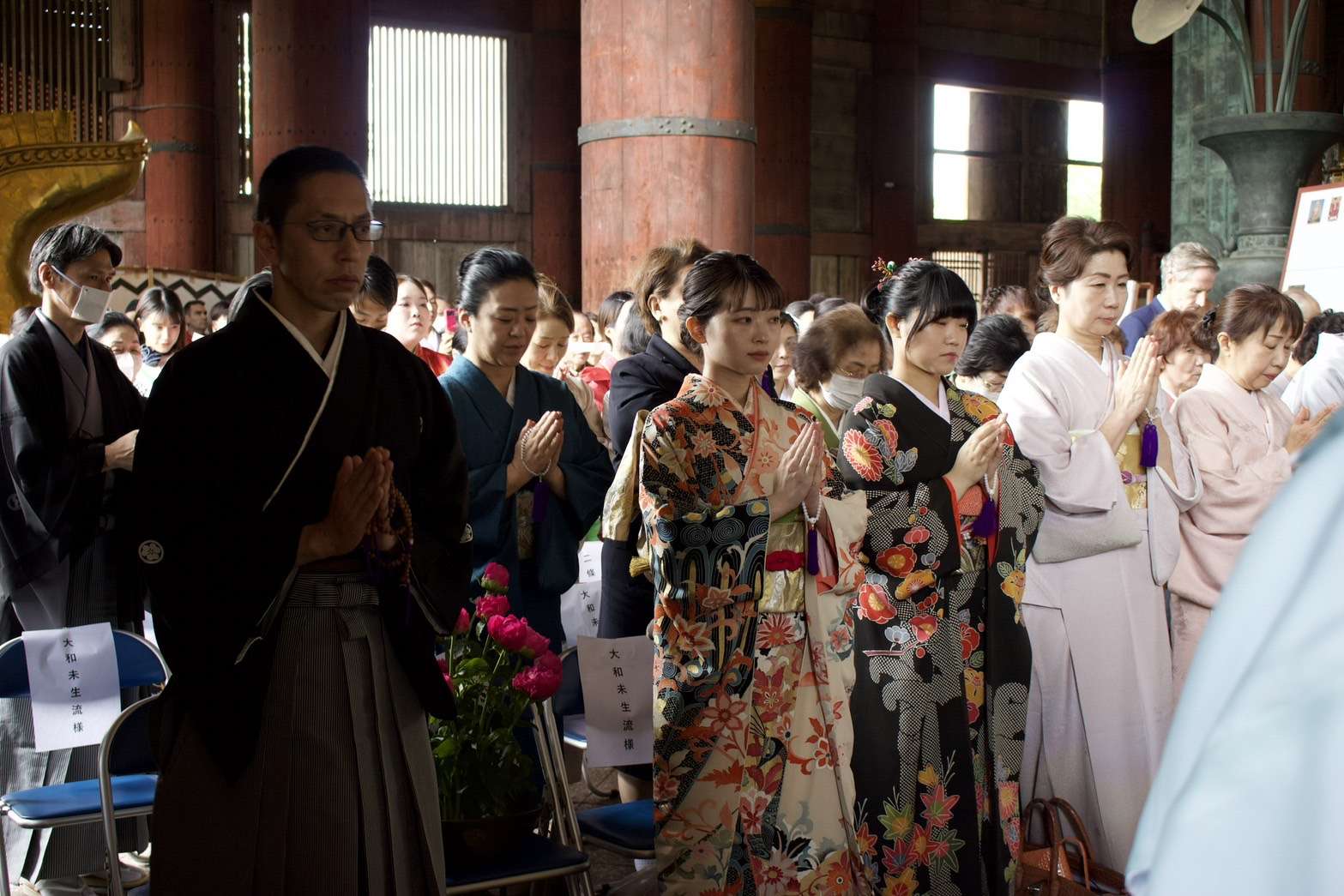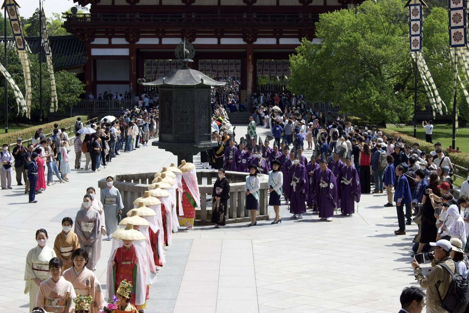 東大寺 聖武祭 献花 2024/05/02 【東大寺 聖武祭 献花】 毎年参加させて頂いております。 大和未生流の献花 奈良東大寺大仏殿を建立し、大仏 開眼の偉業を達成された聖武天皇を偲び、毎年その命日に法要が行われております。 今年も、天皇殿・大仏殿に、大和未生流家元が献花をご奉納されました。 日頃公開されていない天皇殿での法要が終わると、式衆・稚児などによる華やかな練り行列が行われます。 行列が大仏殿に到着した後は、聖武天皇慶讃法要が執り行われました。 風薫る素晴らしい季節に 素敵なご縁を頂きました事 感謝です🙏 華道
