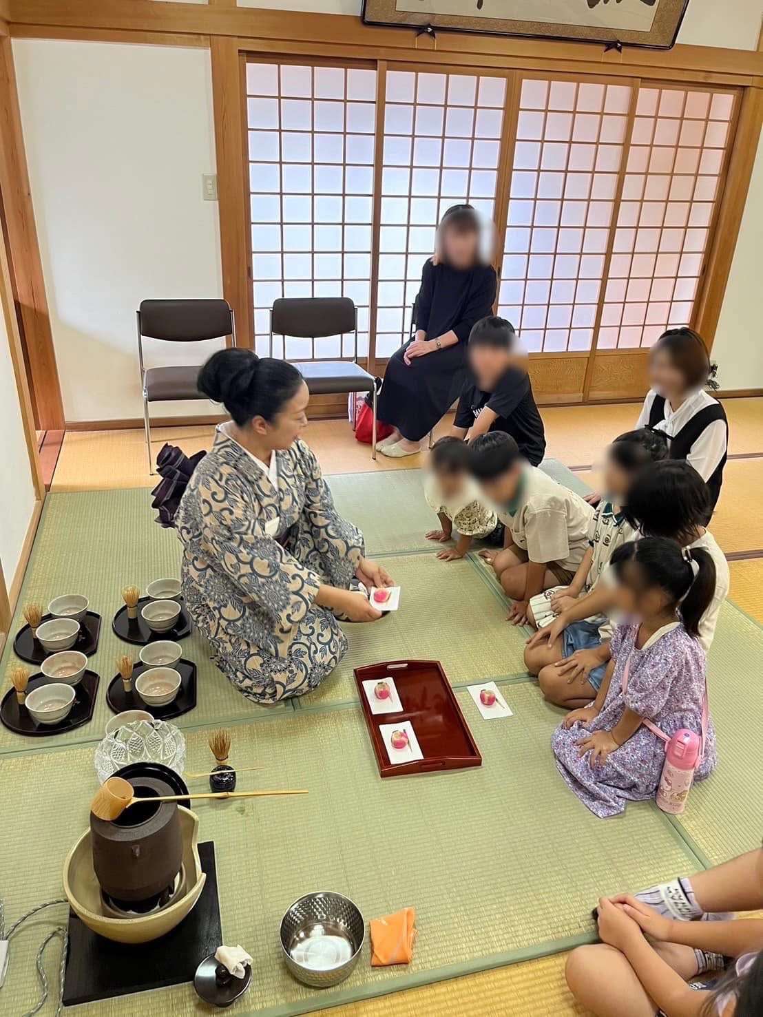 浄正寺・親子お抹茶体験 2024/08/17 【浄正寺・親子お抹茶体験】 大和八木上品寺町にあります 浄正寺さんで親子お抹茶体験 子供達で賑わいました♪ 和室の入り方 ご挨拶の仕方 お抹茶体験 お菓子の頂き方や お抹茶の飲み方 自分で点てたお抹茶はどんな味かな? 楽しんで頂けたようで何よりです😊 主菓子:朝顔 はつの家 干菓子:老松・末富 茶道